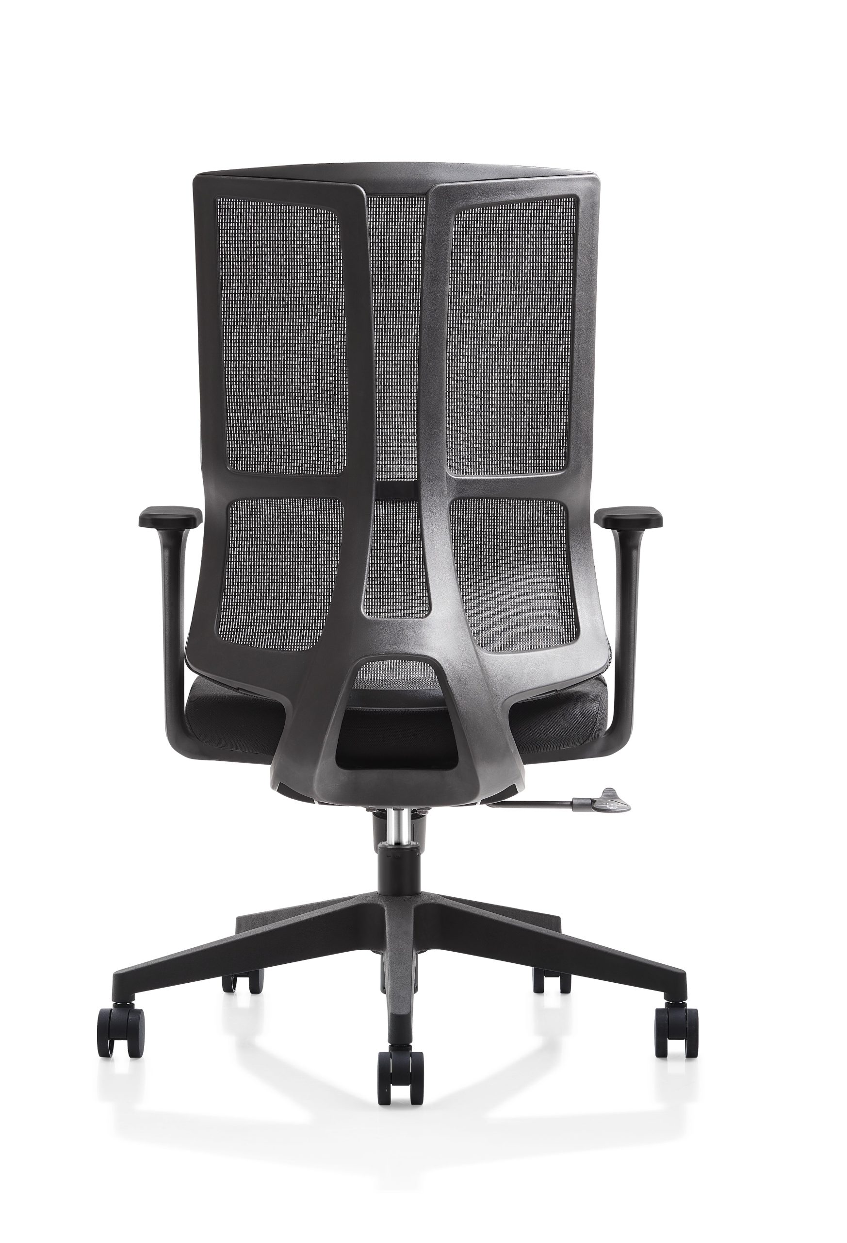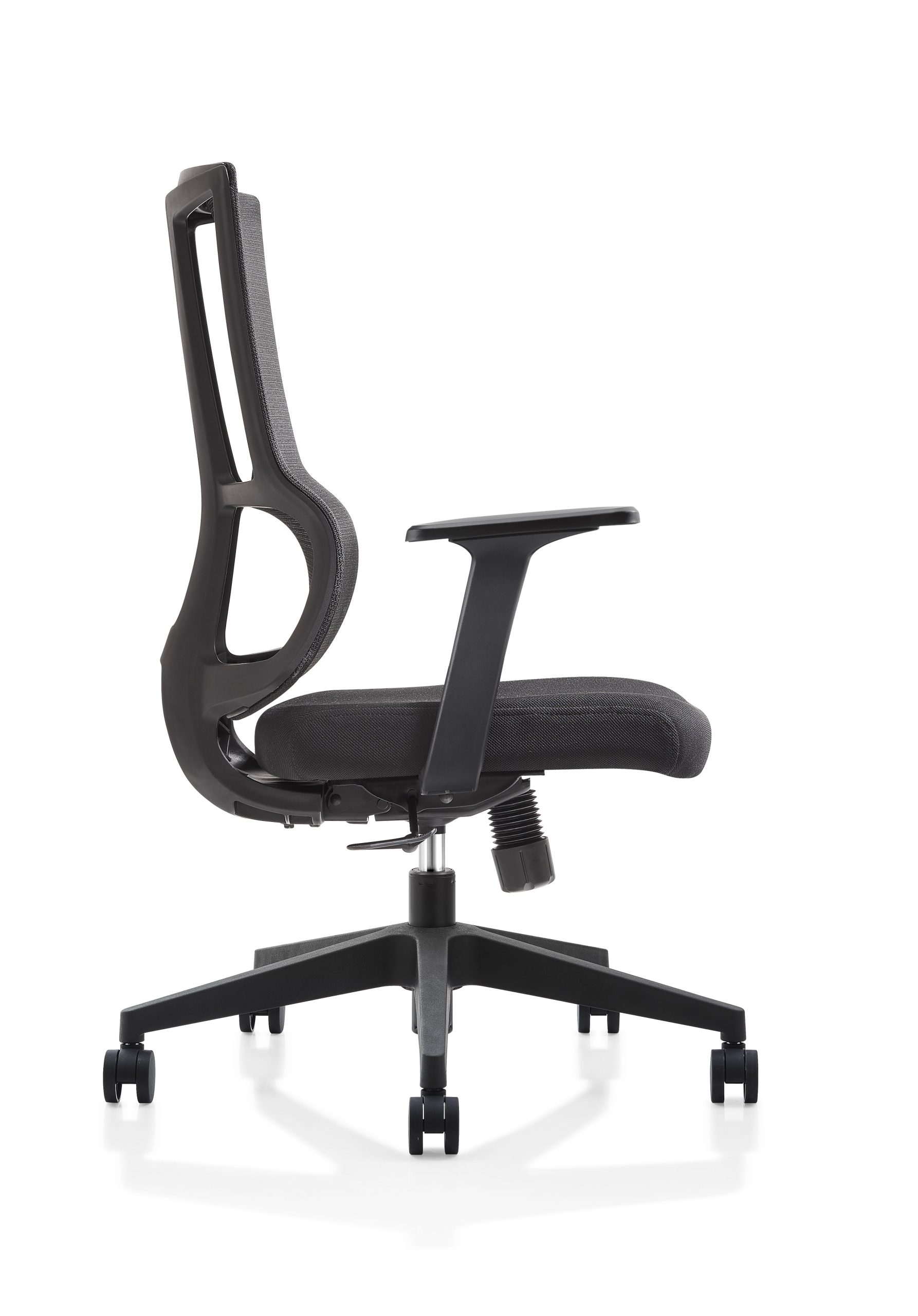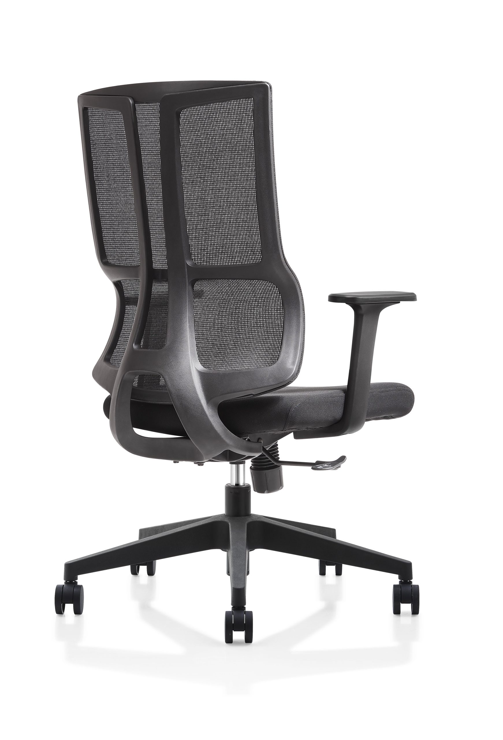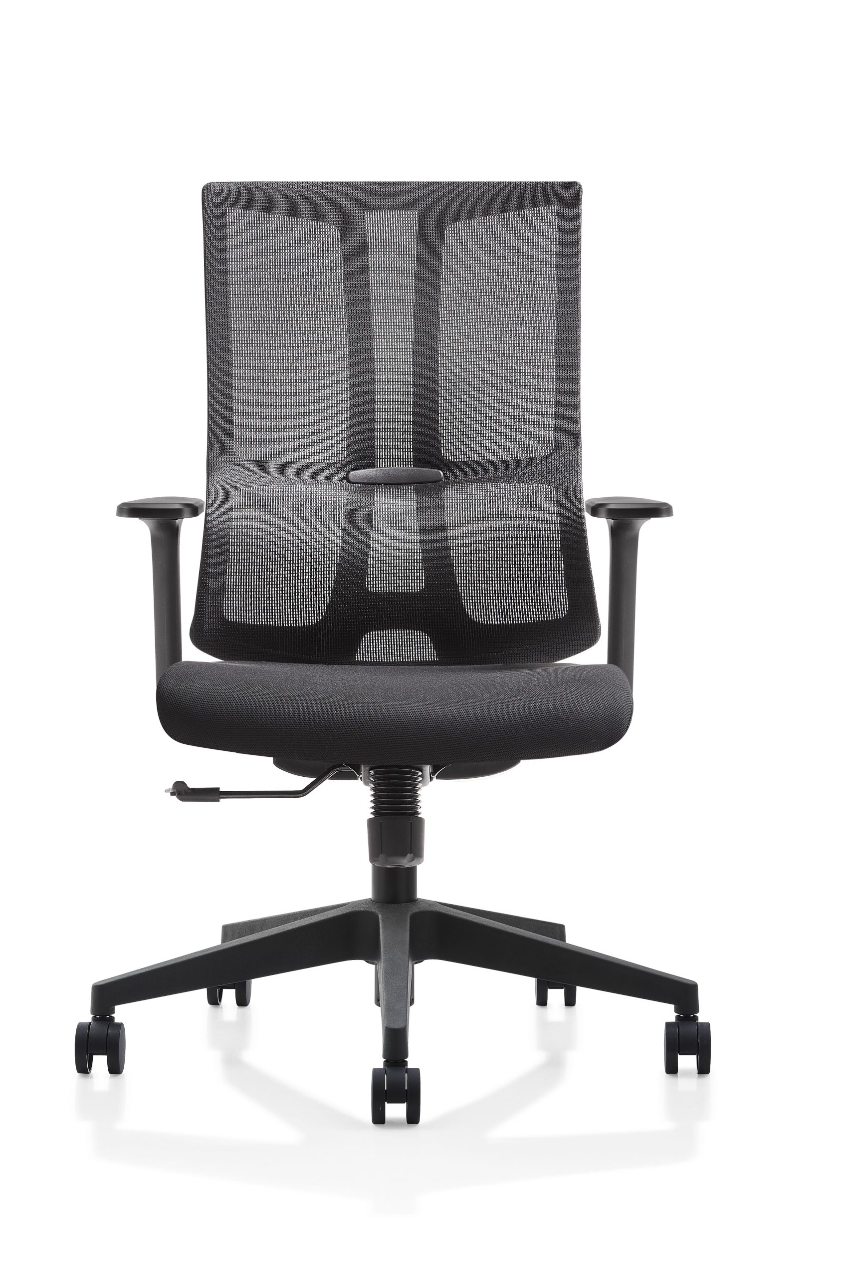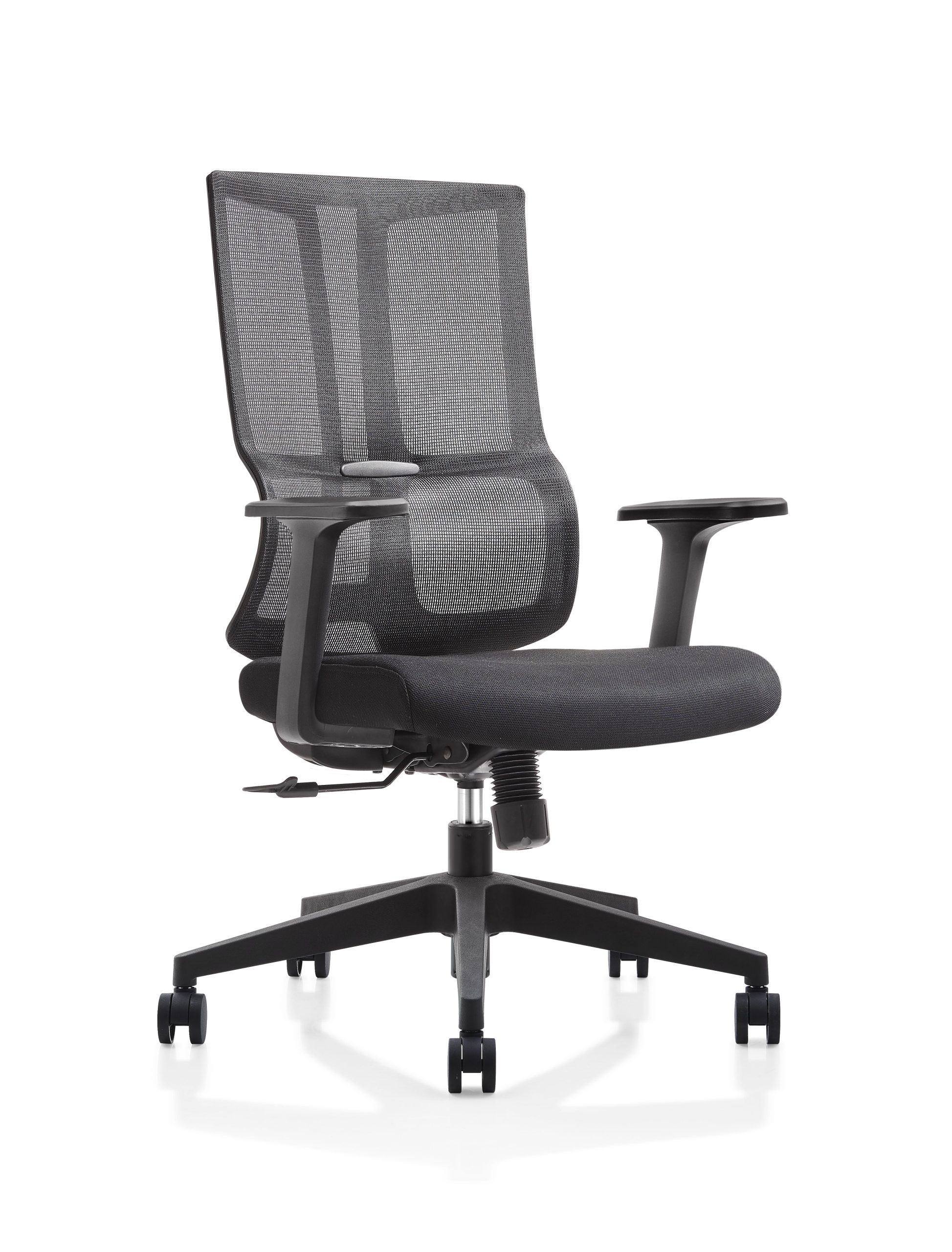 Silla semi ejecutiva con respaldo de malla de diseño abierto que mejora la ventilación y el soporte. Cuenta con asiento acolchado, descansabrazos fijos y sistema de ajuste de altura. Su estructura ligera y ergonómica ofrece comodidad y estabilidad para el uso diario en oficina.